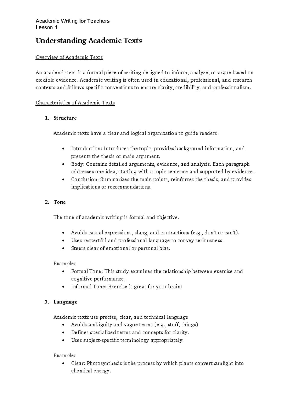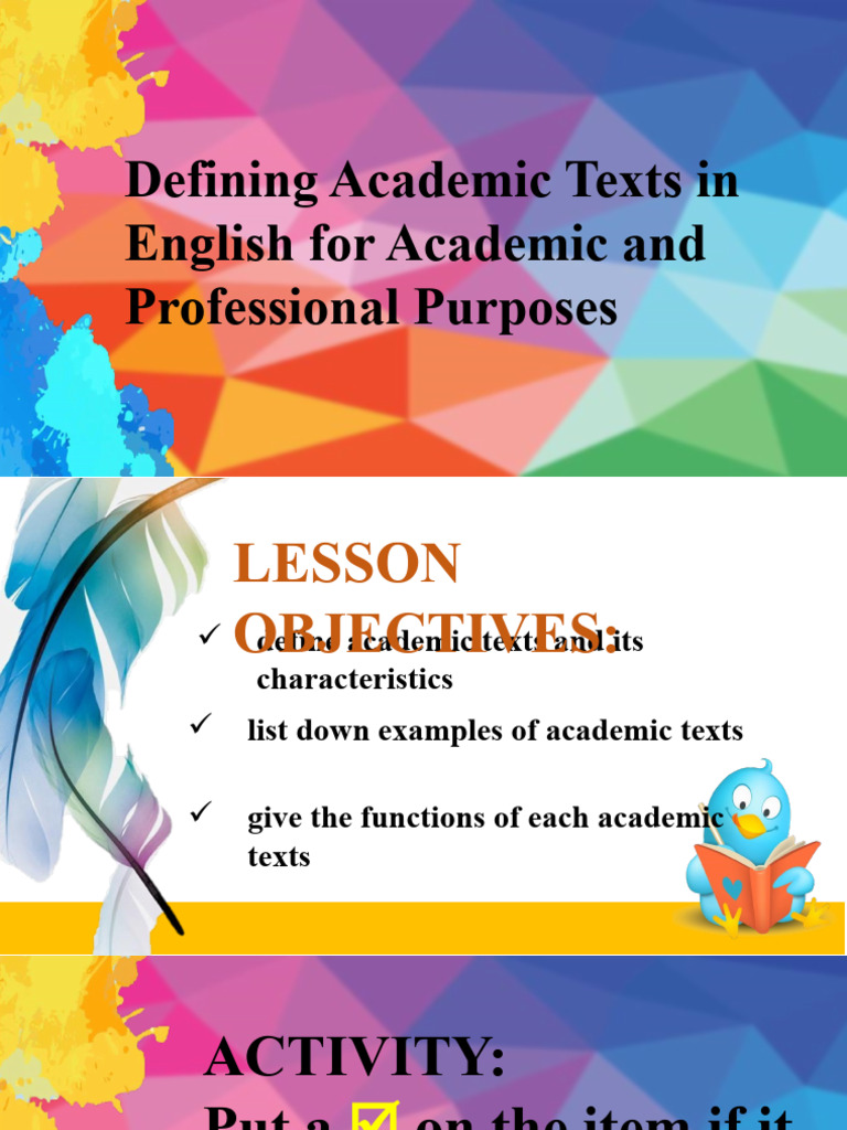 Academic text handout - Lesson 1 Understanding Academic Texts Overview ...