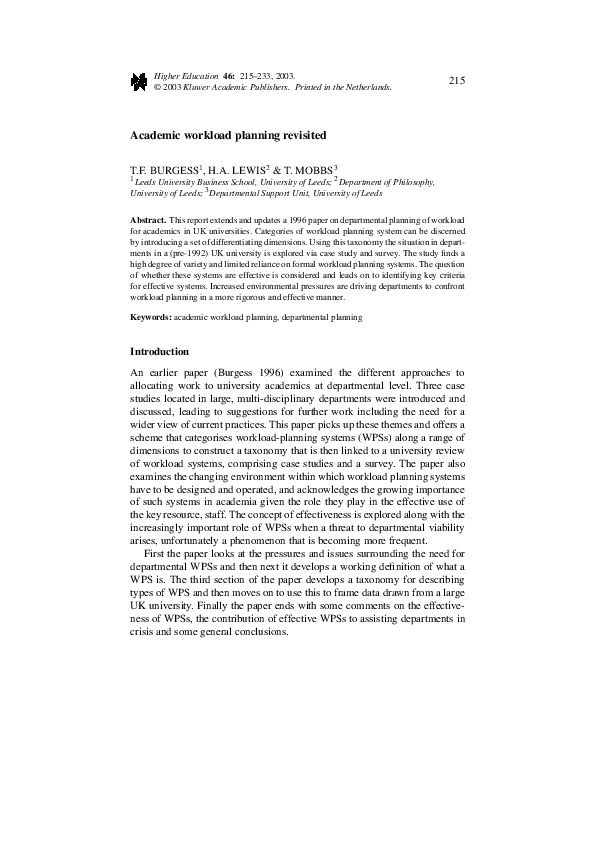(PDF) COMPARING ACADEMIC WORKLOAD MODELS: HOW AUSTRALIAN UNIVERSITIES ...
