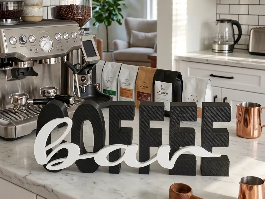 Coffee Bar Decor - Elegant Carbon Style - Free 3D Print Model - MakerWorld