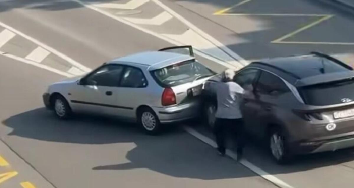 Il colle la voiture devant lui et l'écarte de son passage en accélérant ...
