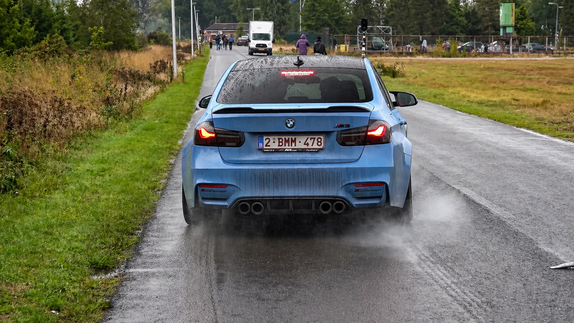 La BMW M3 manque presque d’adhérence en accélérant sur route glissante