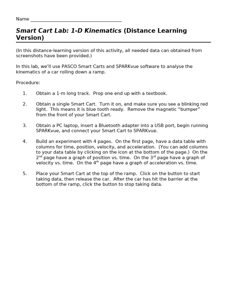 Lab - Smart Cart Lab 01 - 1D Kinematics - DL | PDF | Acceleration ...