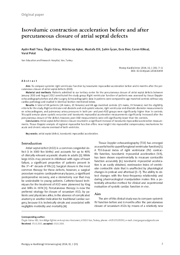 (PDF) Isovolumic contraction acceleration before and after percutaneous ...
