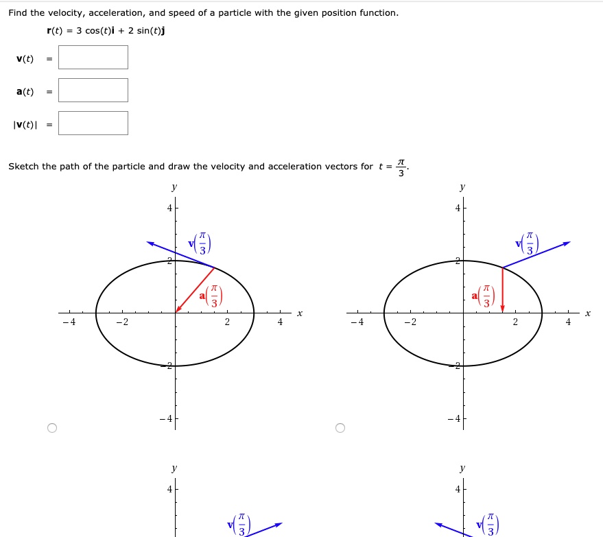SOLVED: a. Find velocity and acceleration vectors. b. Write the ...