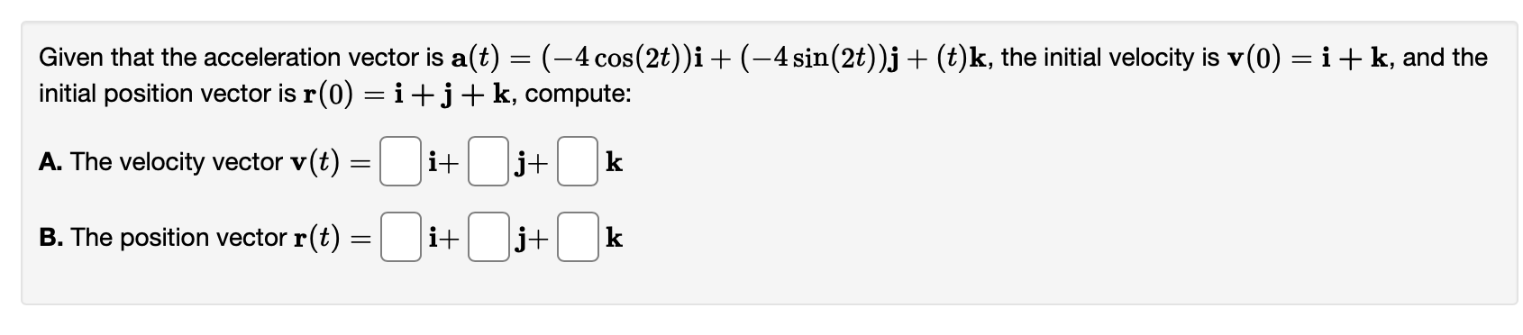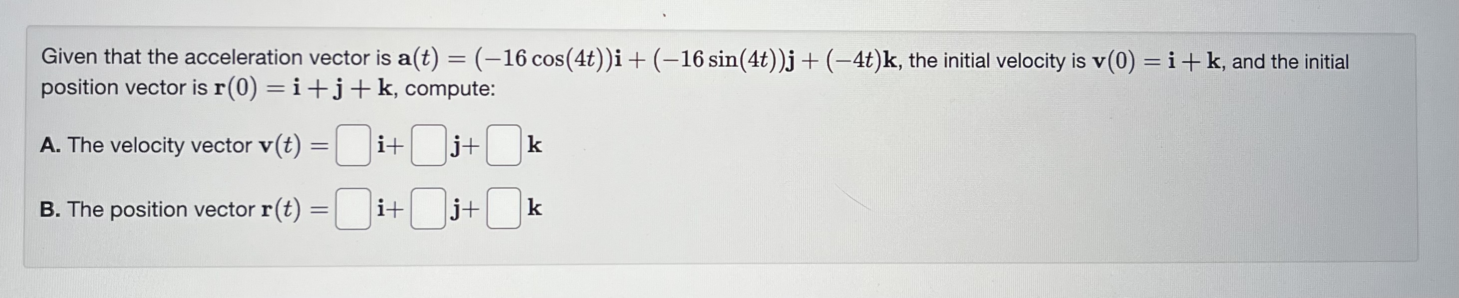 Solved Given that the acceleration vector is | Chegg.com
