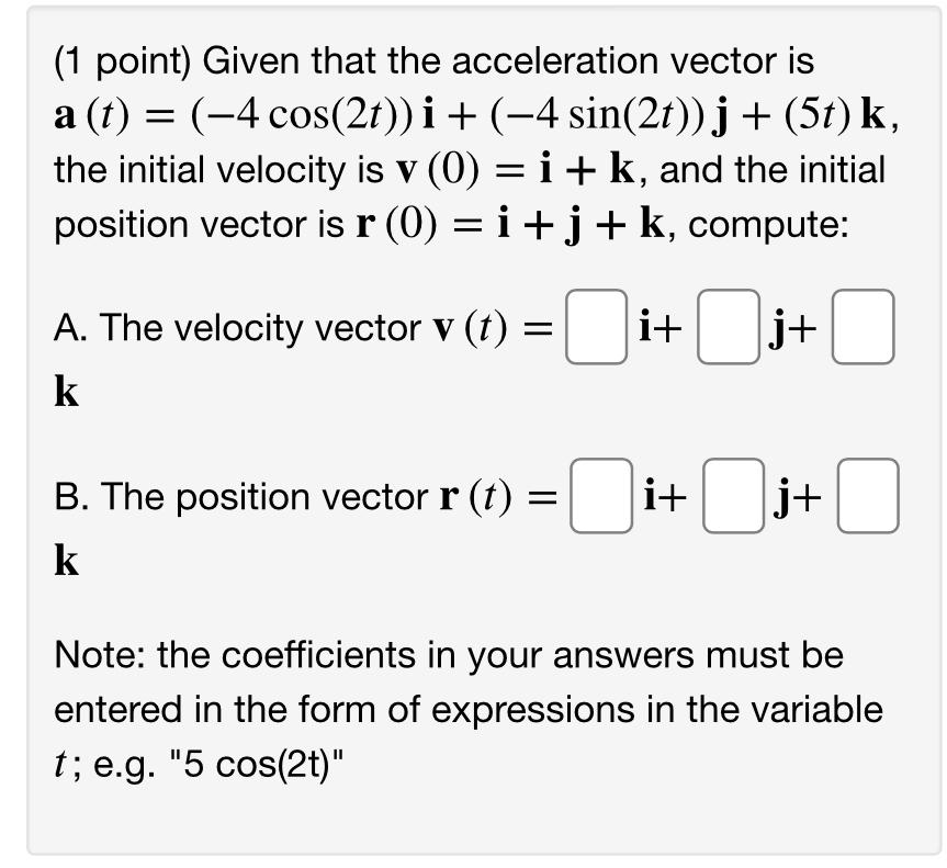 Solved ( 1 point) Given that the acceleration vector is | Chegg.com