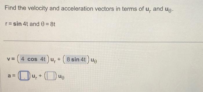 find the velocity and acceleration vectors in terms of 4 and u0 r7cos ...
