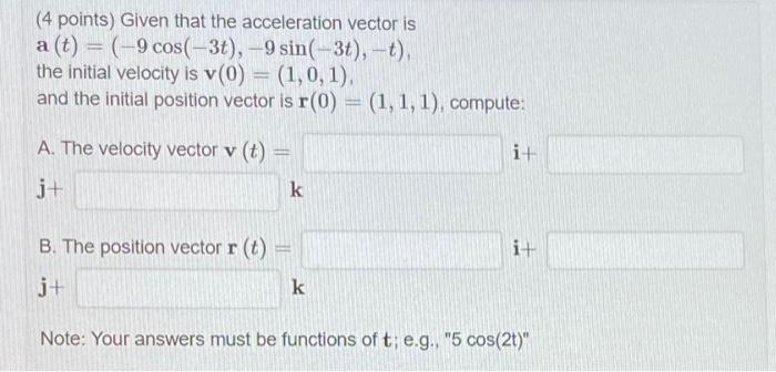 Solved (4 points) Given that the acceleration vector is | Chegg.com