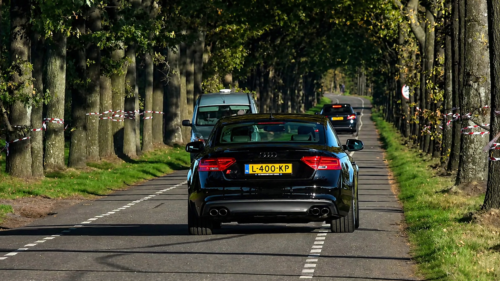 Audi RS5 close call during hard acceleration on narrow street