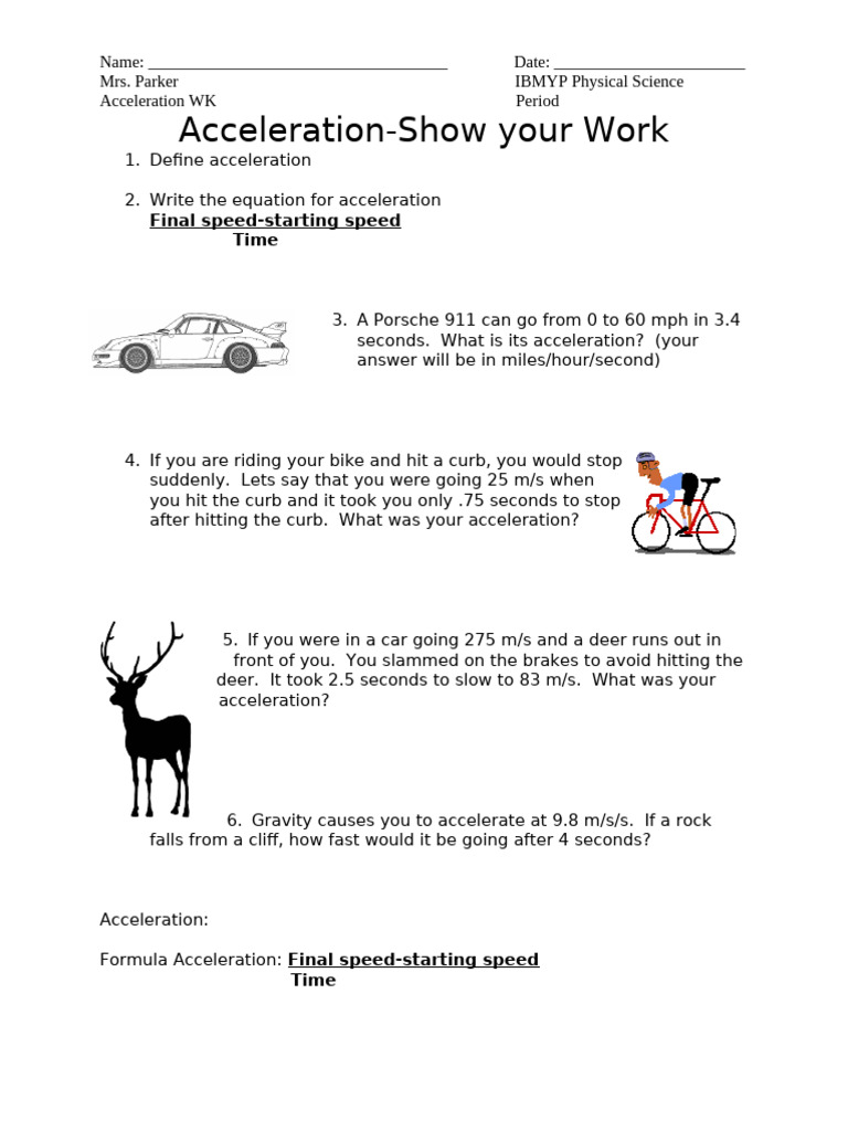 Acceleration Worksheet With Answers - Proworksheet
