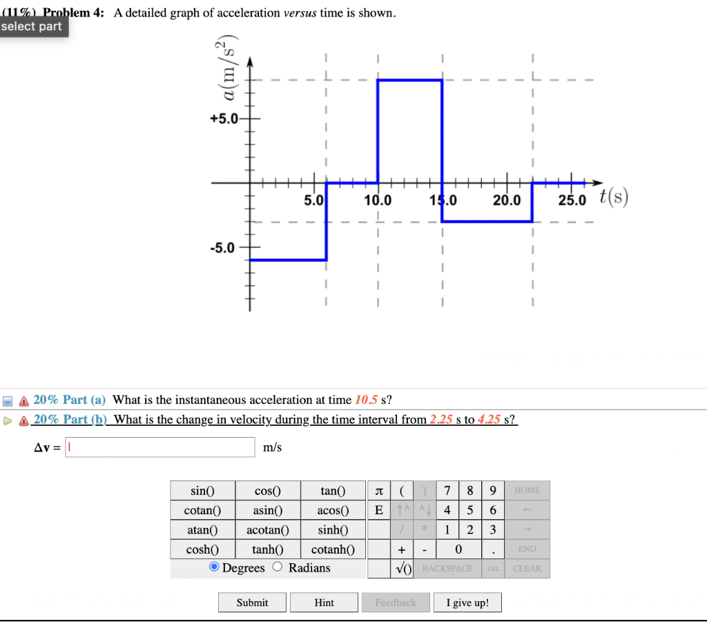 Solved (8%) Problem 10: A detailed graph of acceleration | Chegg.com