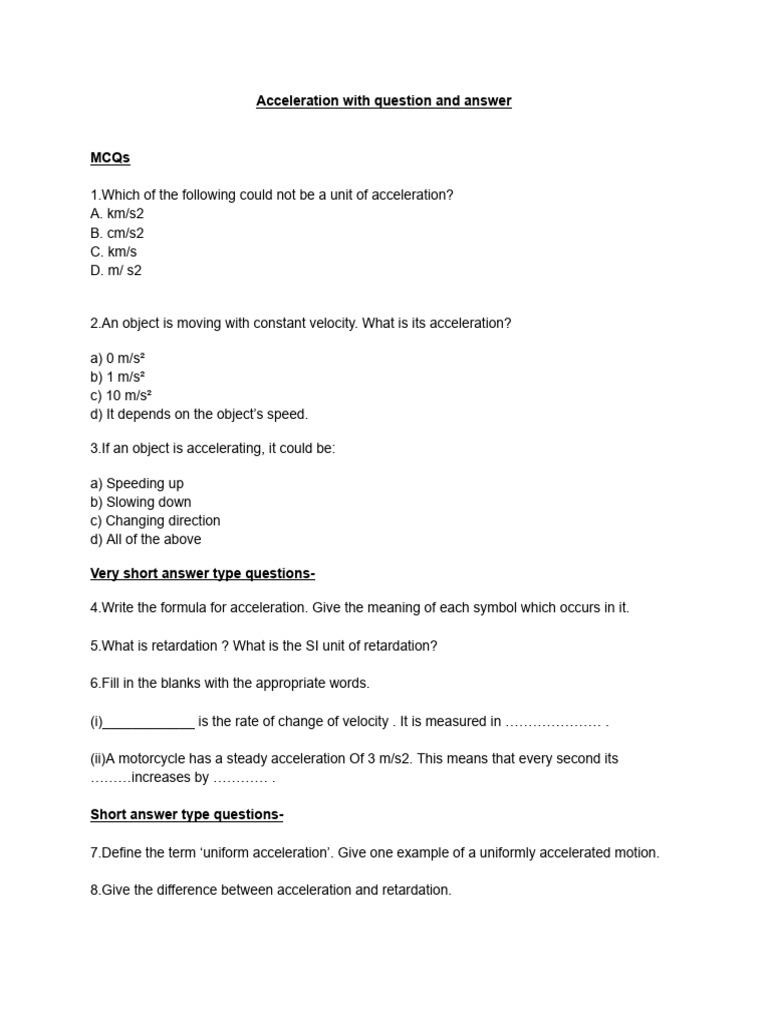 Acceleration With Question and Answer - 250731 - 133111 | PDF