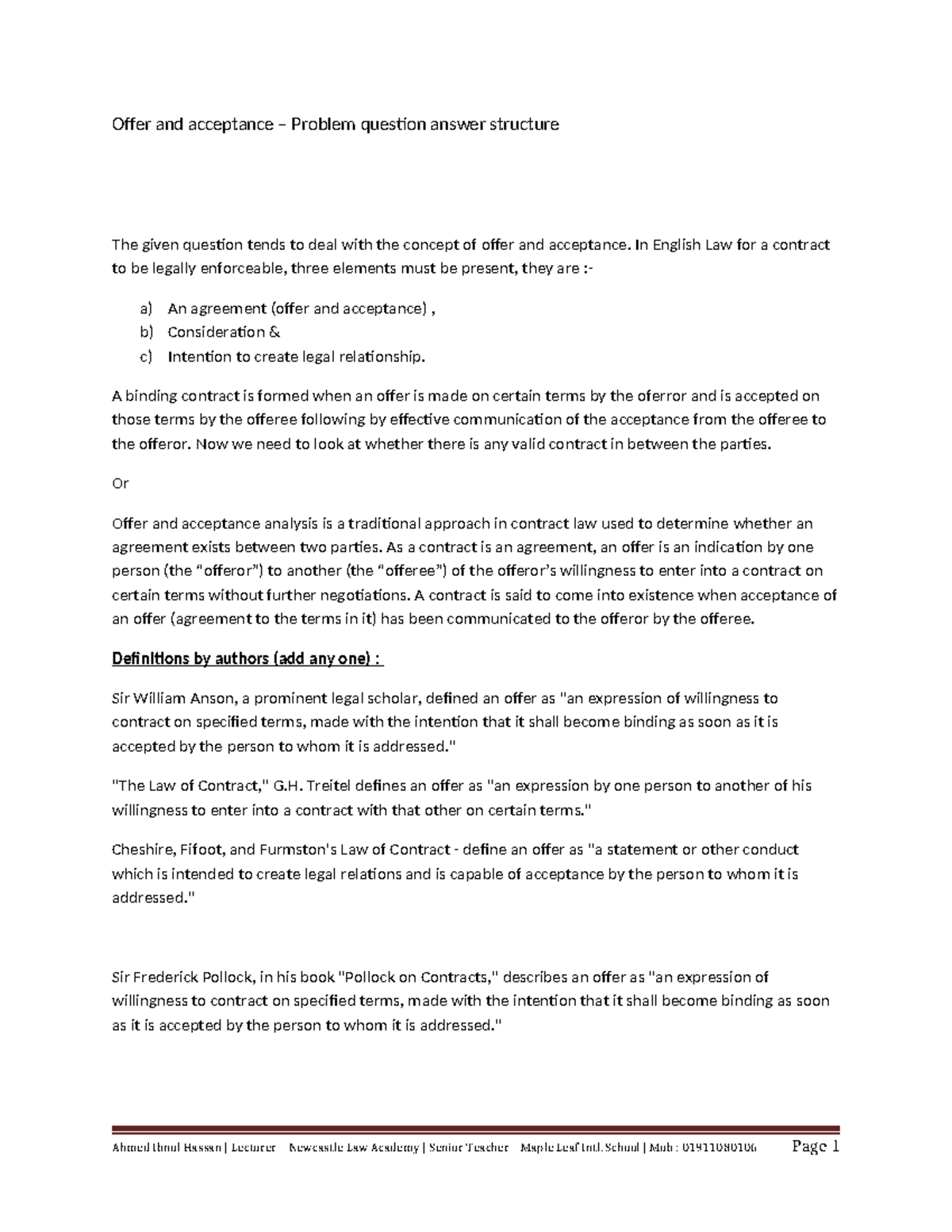 Offer & Acceptance Problem - Sample Answer | PDF | Offer And Acceptance ...