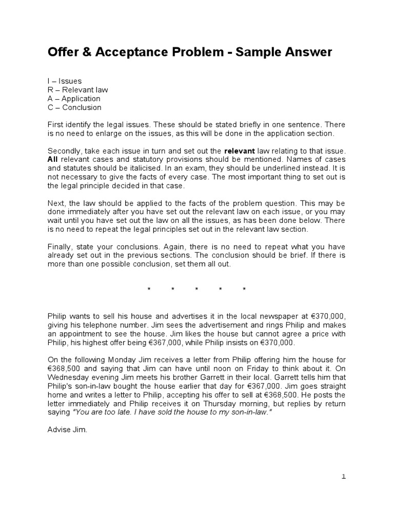 (DISTINCTION) IRAC analysis sample question on Offer and Acceptance ...