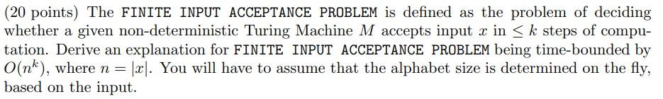 (20 points) The FINITE INPUT ACCEPTANCE PROBLEM is | Chegg.com
