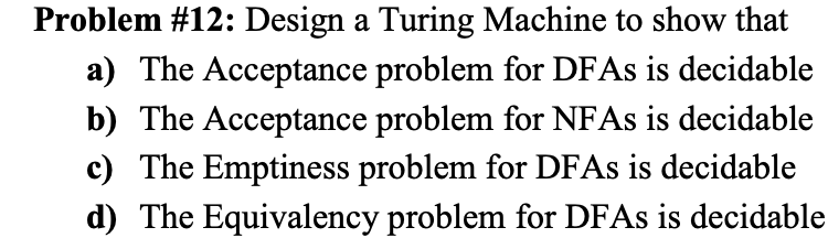 Solved Problem #12: Design a Turing Machine to show that a) | Chegg.com