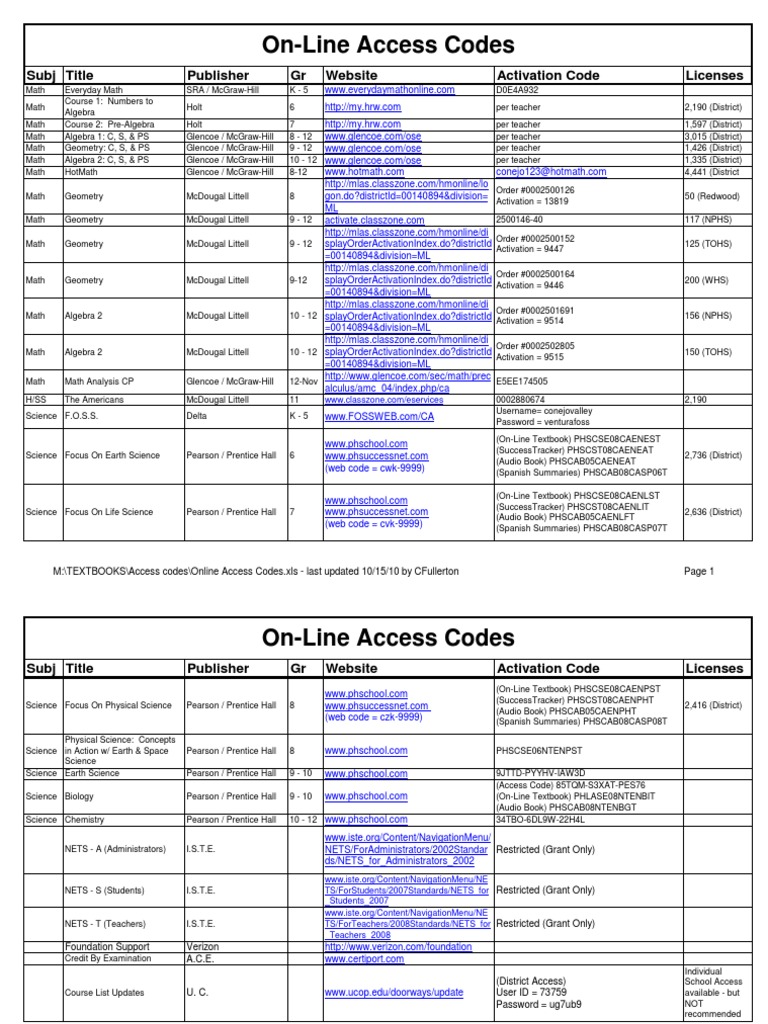 Online Access Codes-Updated 101510 | PDF | Textbook | World Wide Web