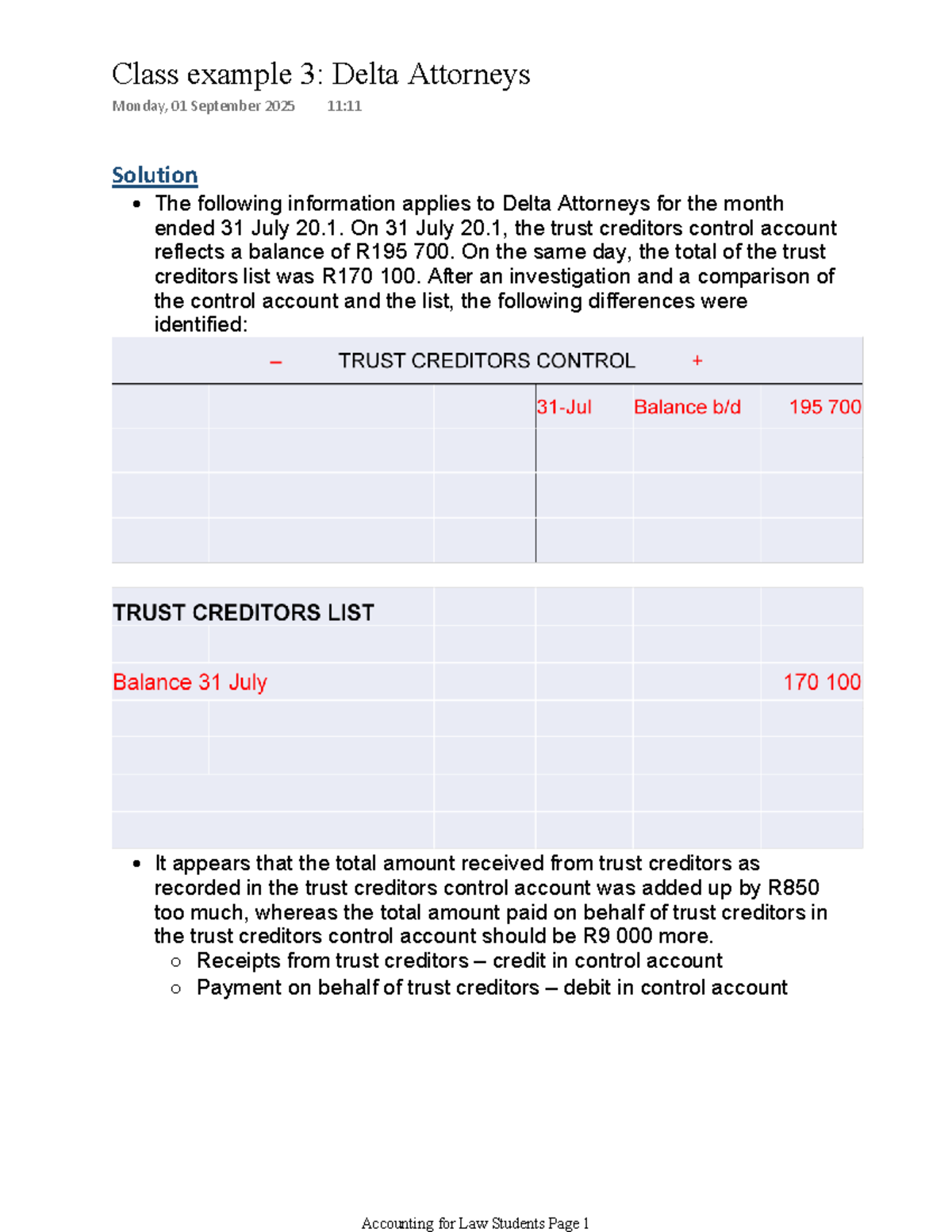 Acc for Law Students: Control Accounts Example - Delta Attorneys - Studocu