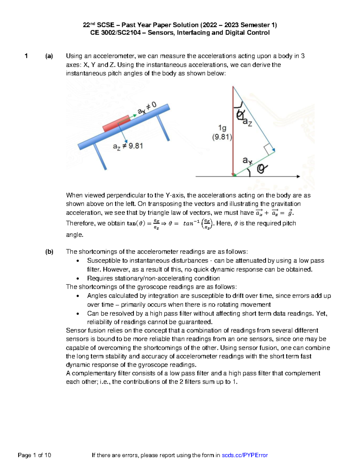 SC2104 AY2223 S1 Past Year Paper Solutions: CE Sensors & Control - Studocu