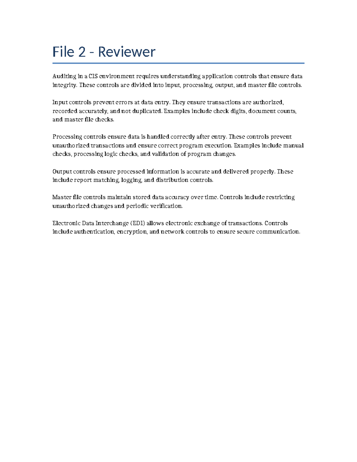 CIS File 2 - Quick Study Guide on Auditing Application Controls - Studocu