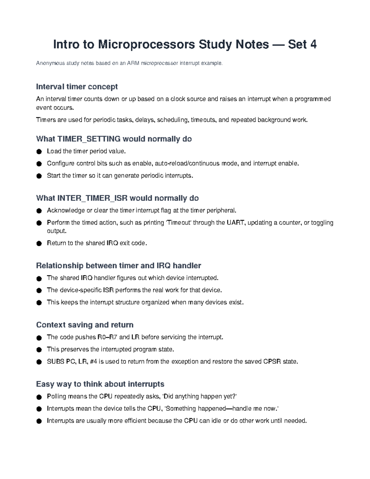 Microprocessors (CSE101) Study Notes: ARM Interrupts & Timers - Studocu