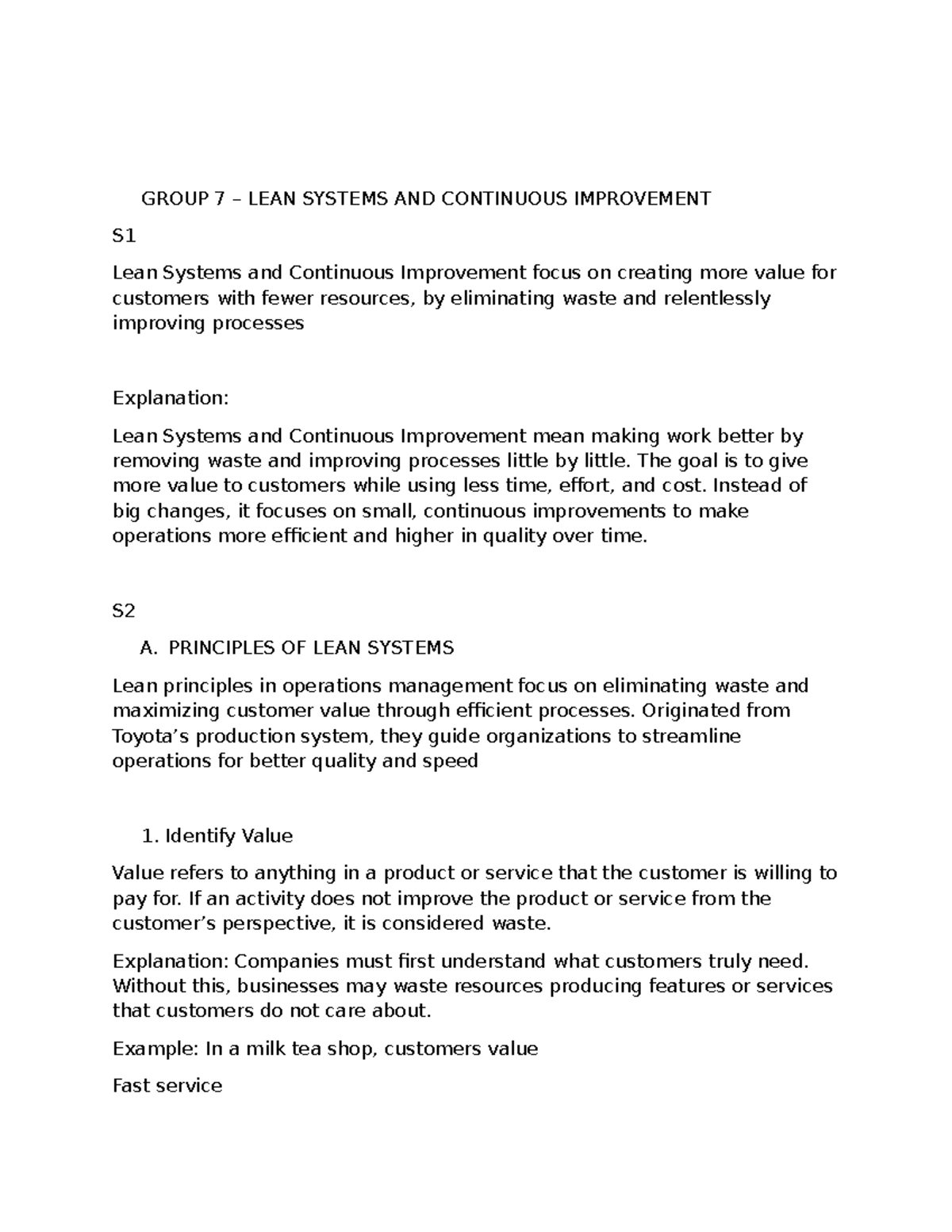 GROUP 7 LEAN SYSTEMS & CONTINUOUS IMPROVEMENT REPORT - Studocu
