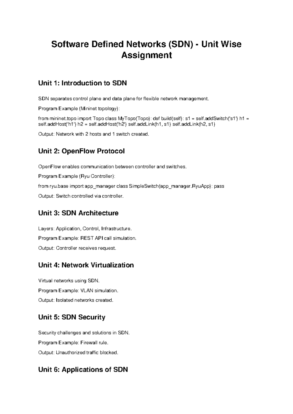 SDN (Software Defined Networks) Unitwise Assignment Overview - Studocu
