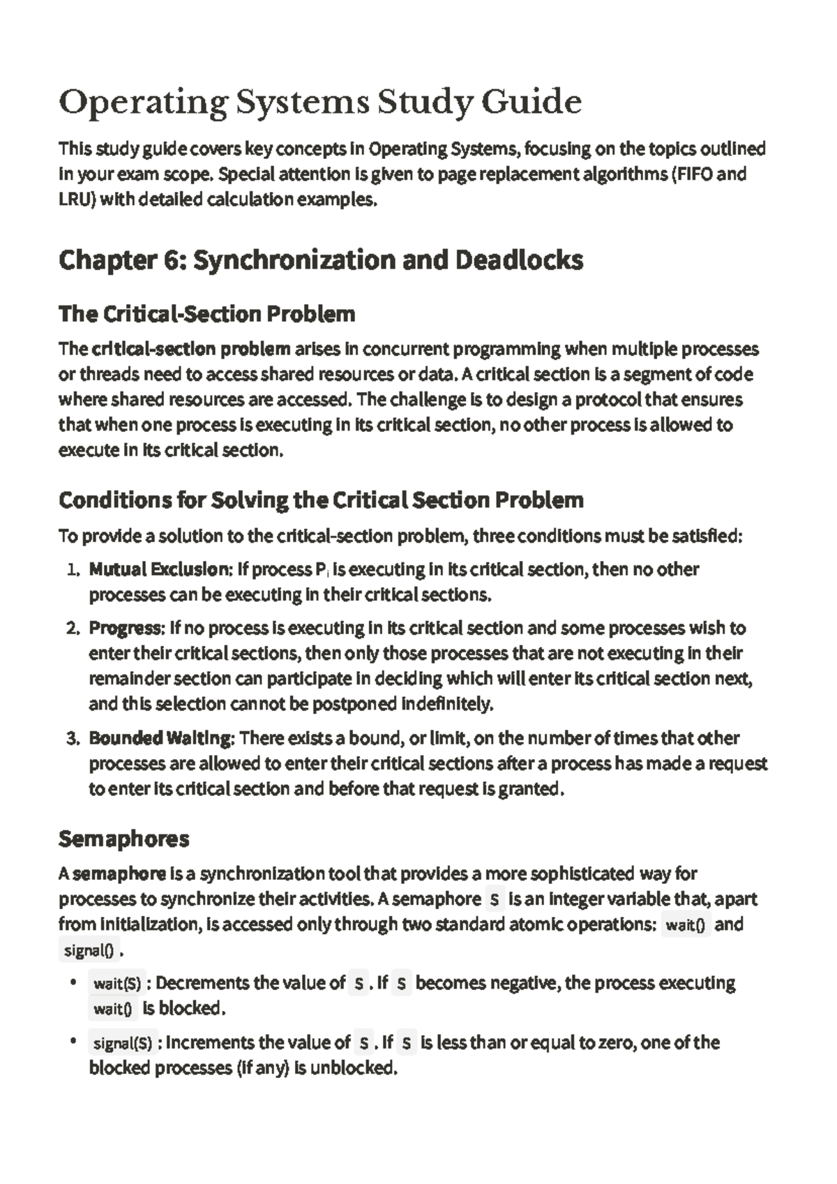 Operating Systems Study Guide: Key Concepts and Algorithms - Studocu