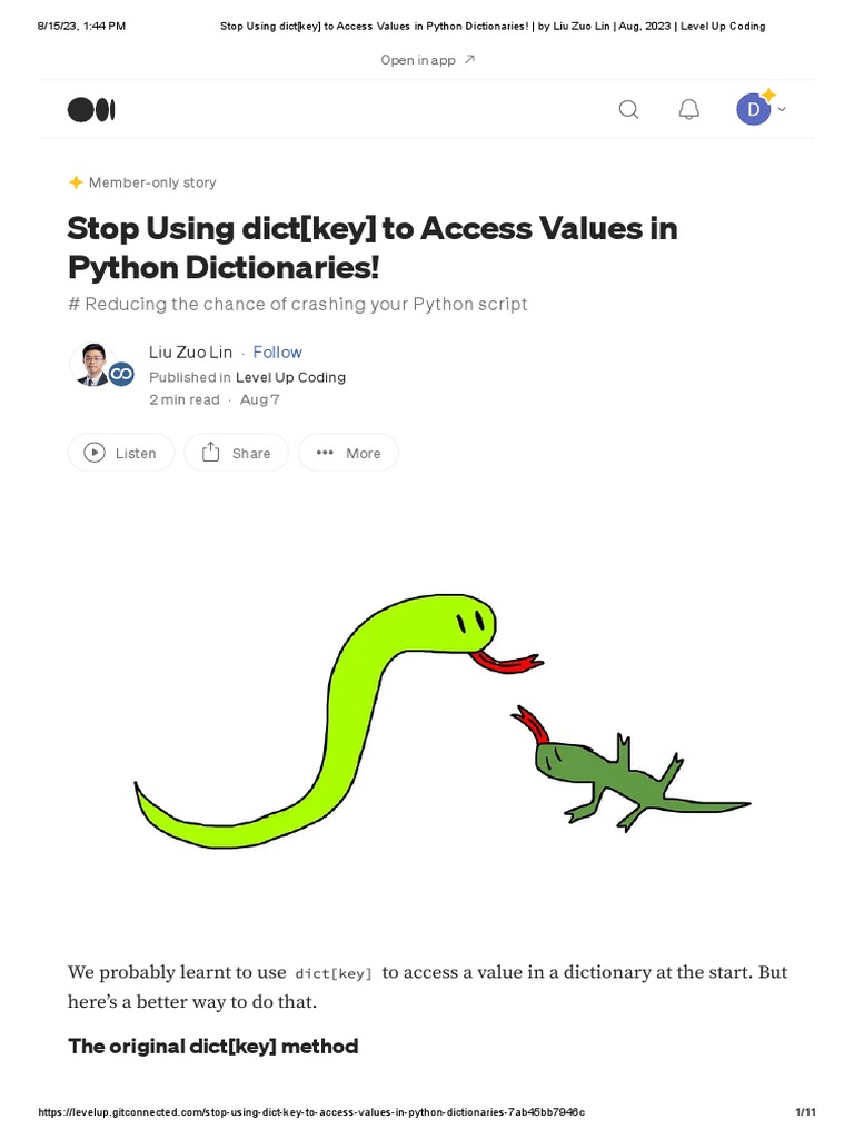 [VIDEO] Stop Using dict[key] To Access Dict Values in Python! | by Liu ...