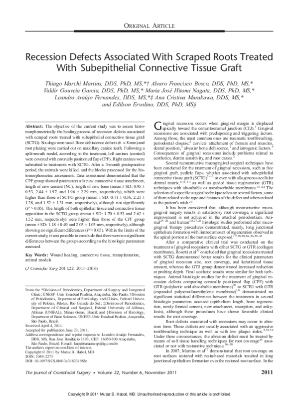 (PDF) Recession Defects Associated With Scraped Roots Treated With ...