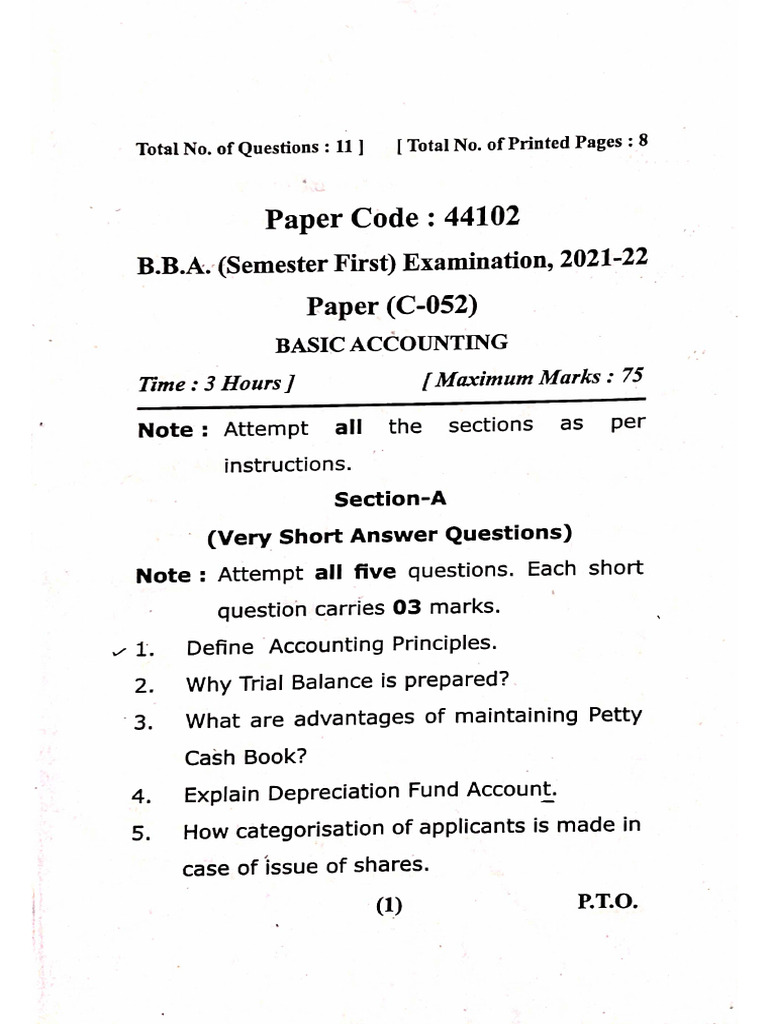 Principles of Accountancy Paper Pattern | BCom I Year I Sem | SGBAU ...