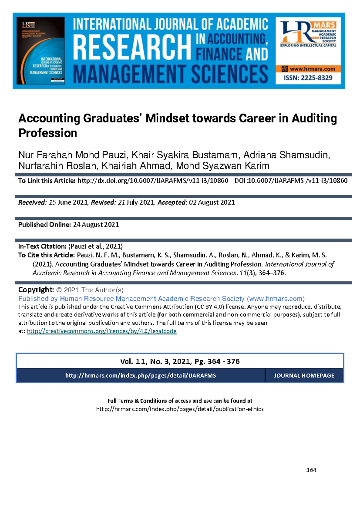 Accounting Graduates' Mindset on Auditing Careers: Insights from ...