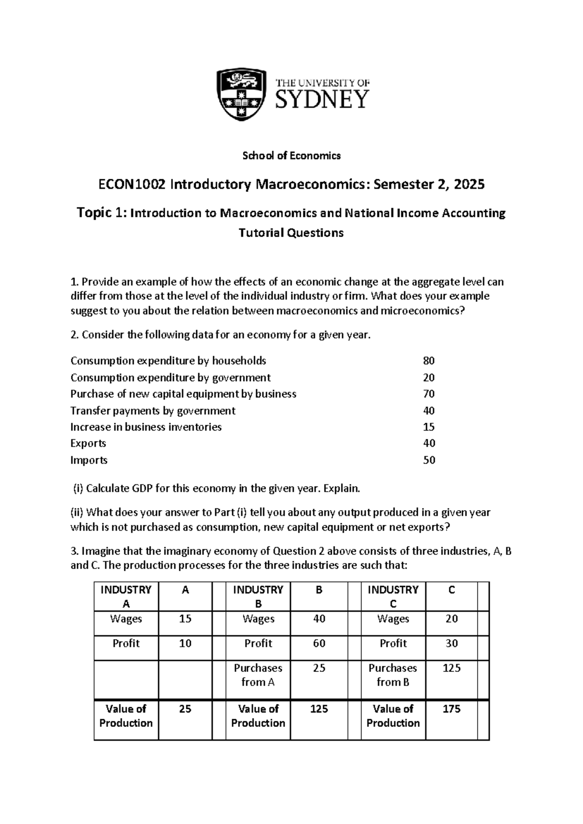 ECON1002 Tutorial: Intro to Macroeconomics & National Income Accounting ...