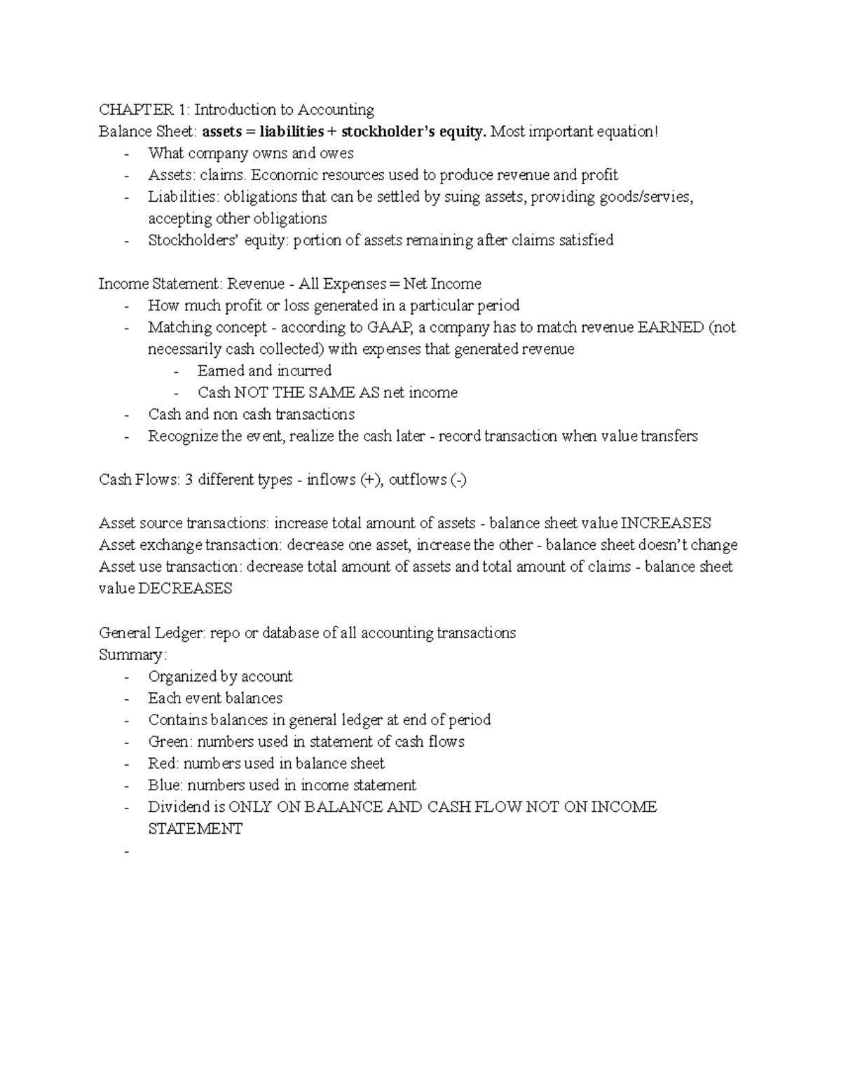 C1 Chapter 1: Intro to Accounting & Business Concepts - Studocu
