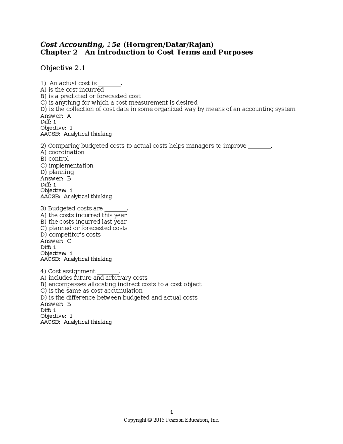 Cost Accounting 15e: Chapter 2 - Intro to Cost Terms & Purposes - Studocu