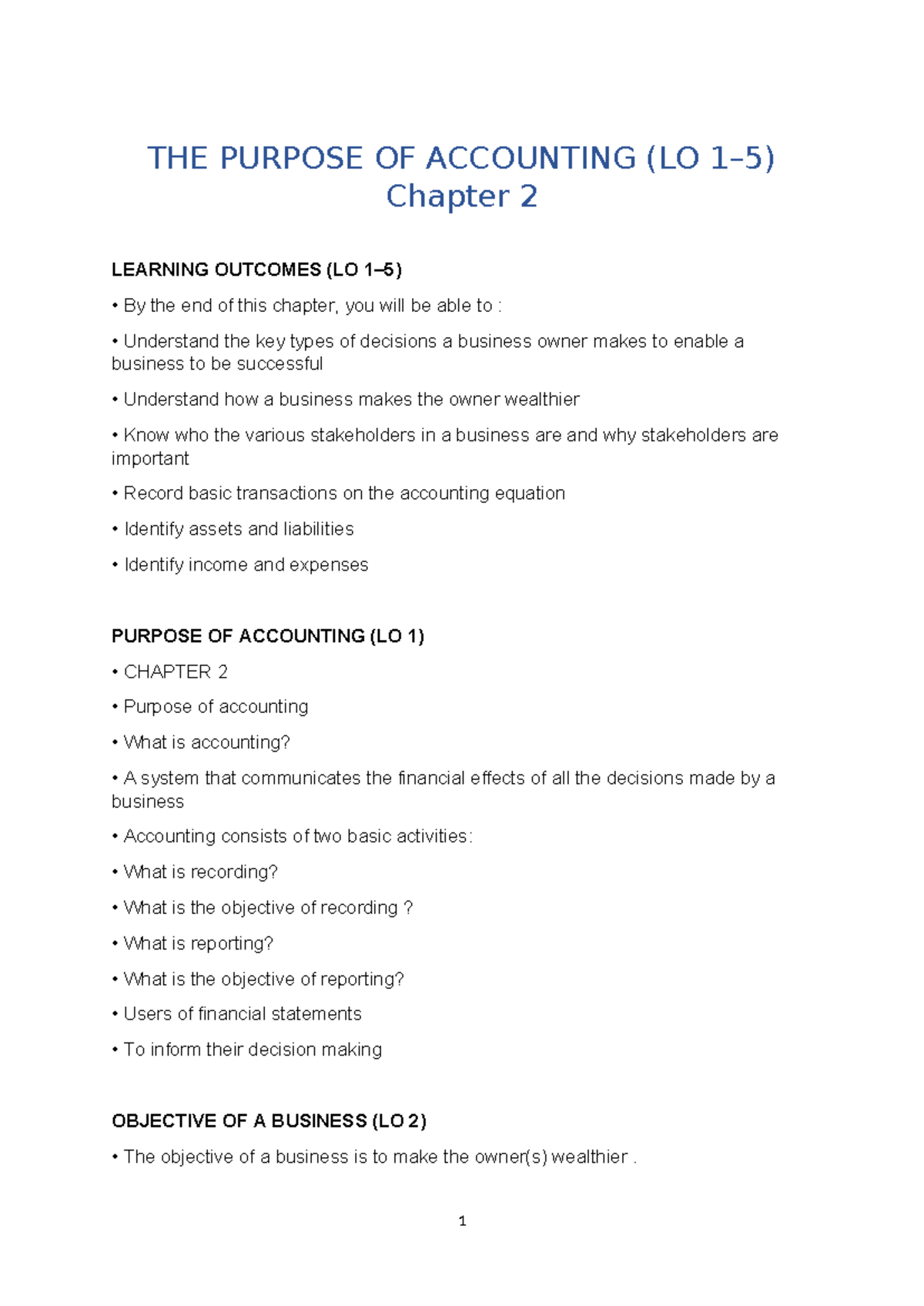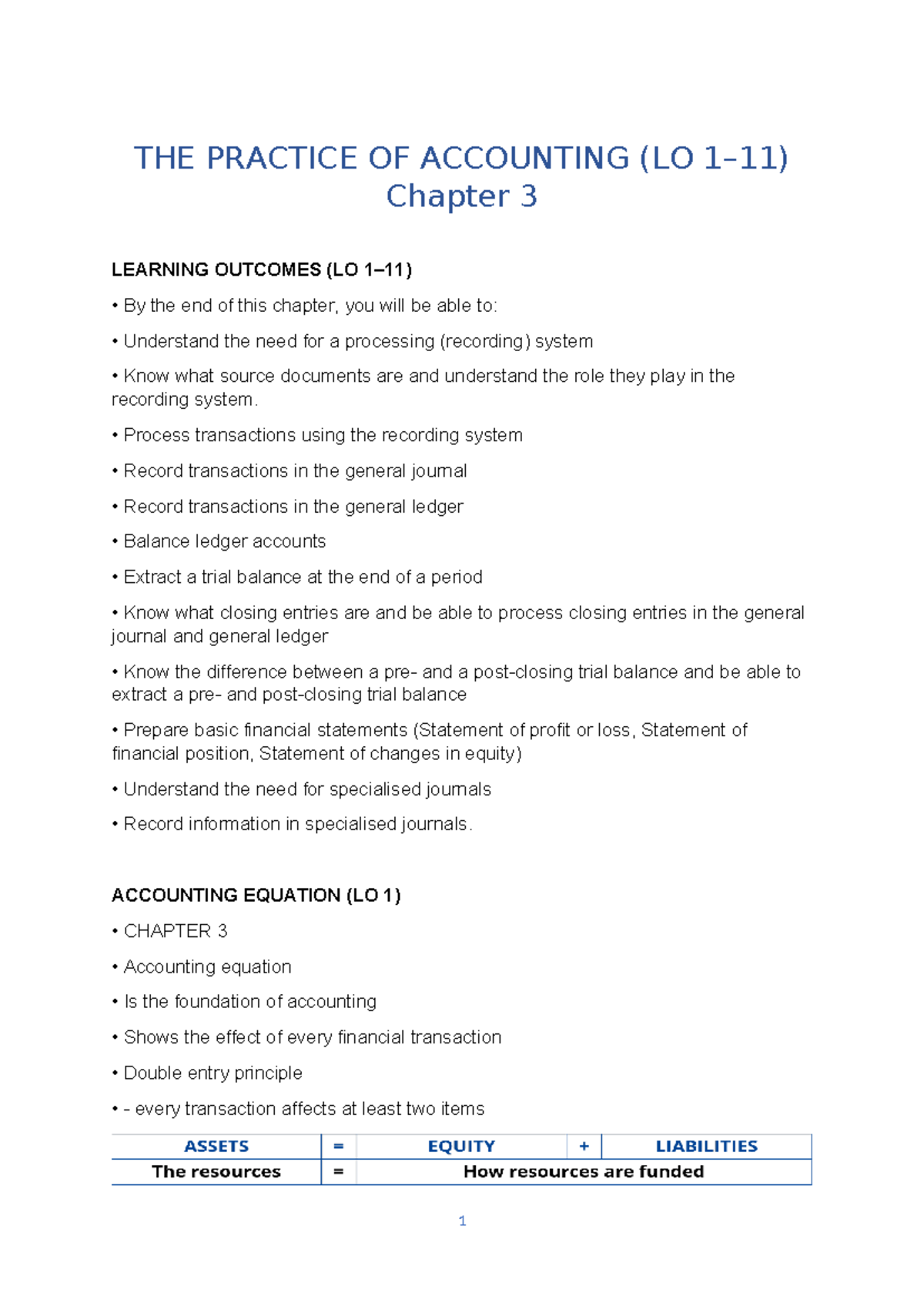 Chapter 3: Accounting Principles and Learning Outcomes (LO) - Studocu