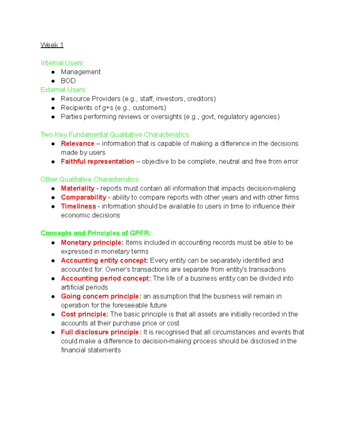 Final Exam Summary Notes for Accounting 101: Weeks 1-11 Overview - Studocu