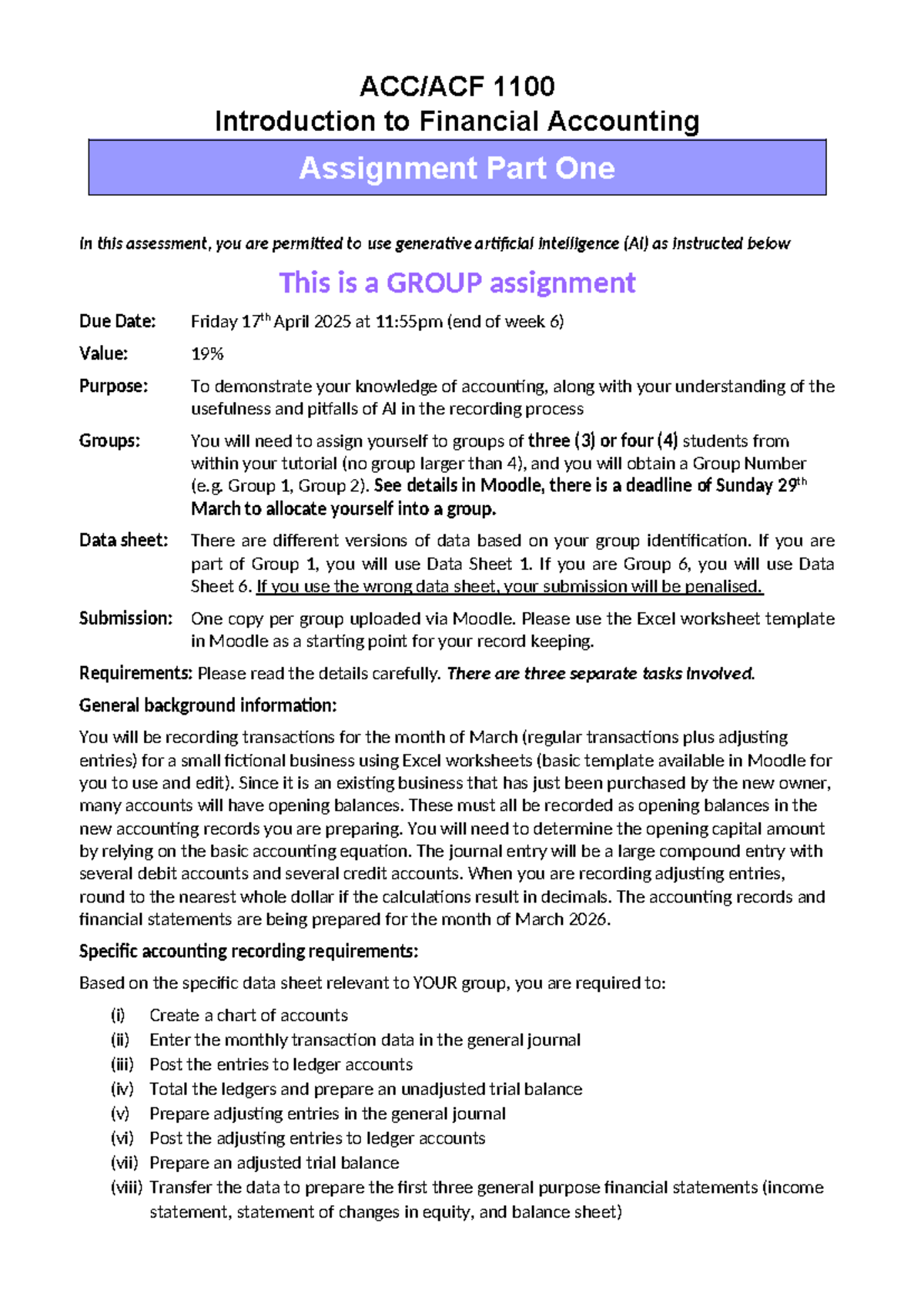 1100 Financial Accounting Group Assignment Part One Guidelines - Studocu
