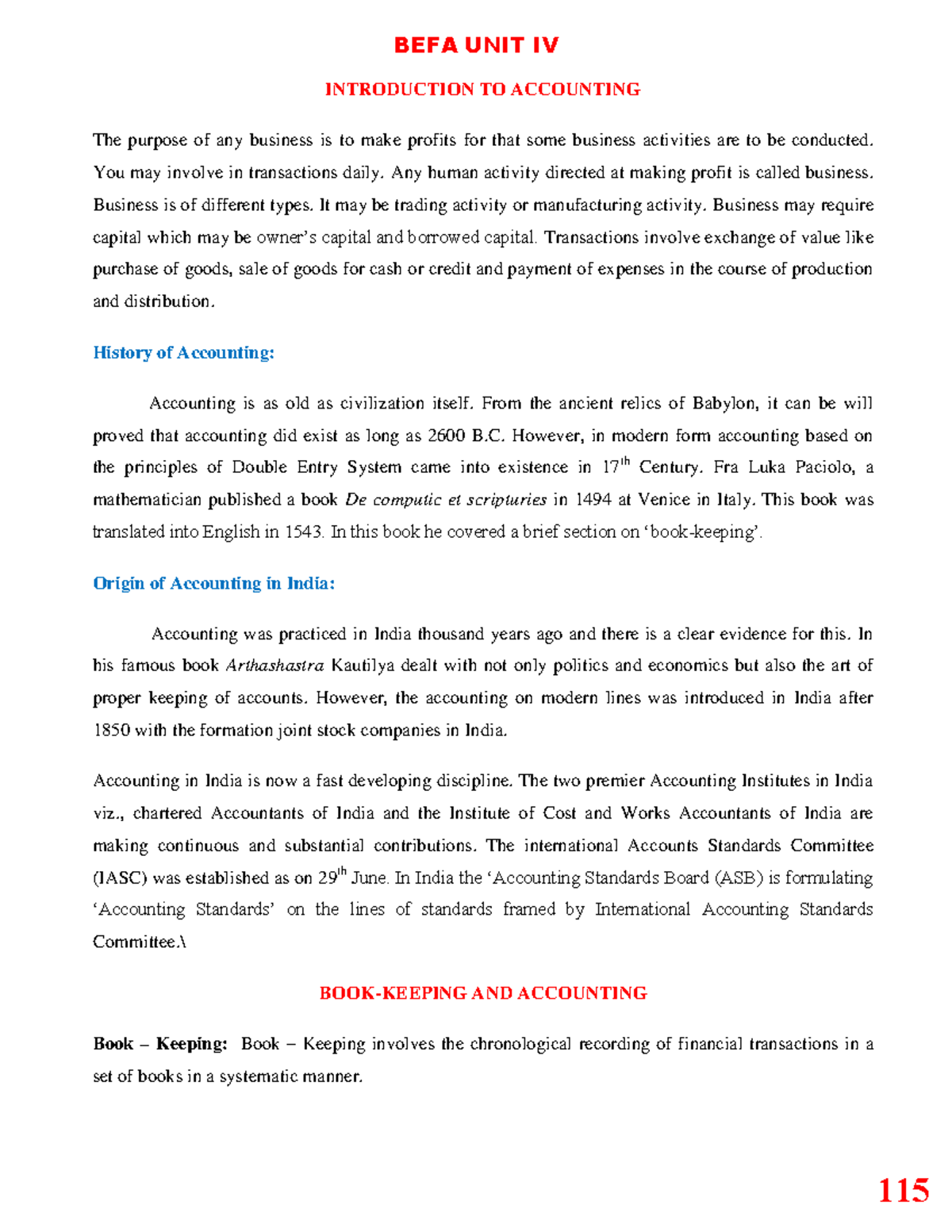 BEFA UNIT IV - Introduction to Accounting Concepts and Principles - Studocu