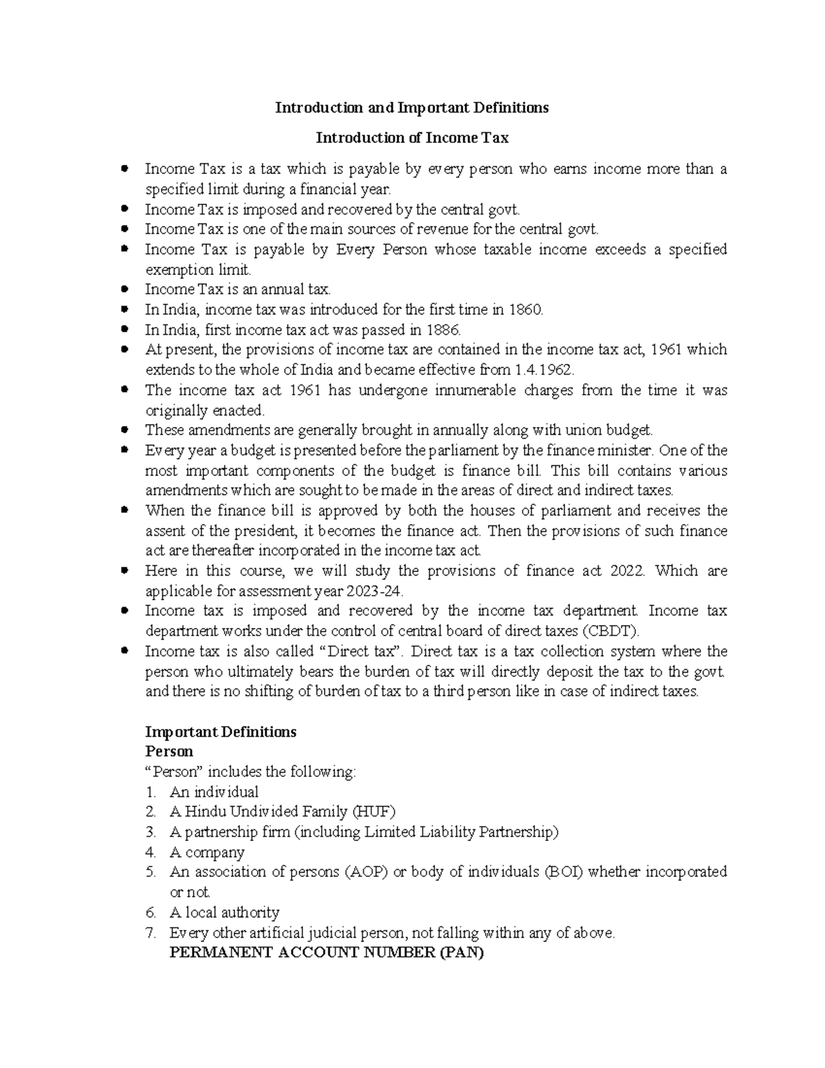 Basic Introduction to Income Tax: Key Definitions and Concepts - Studocu