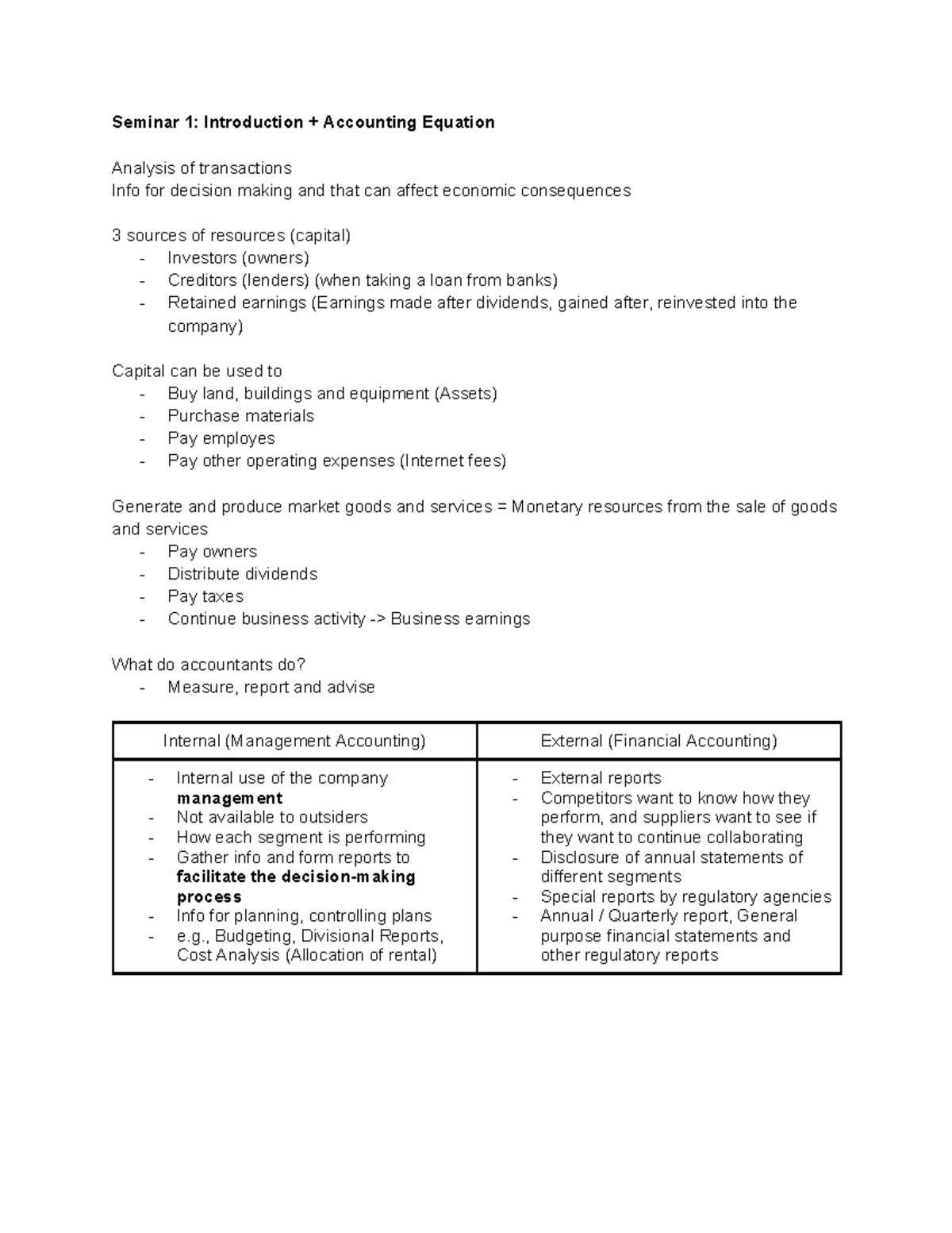 Financial Accounting Seminar 1: Intro to Accounting Equation & Decision ...