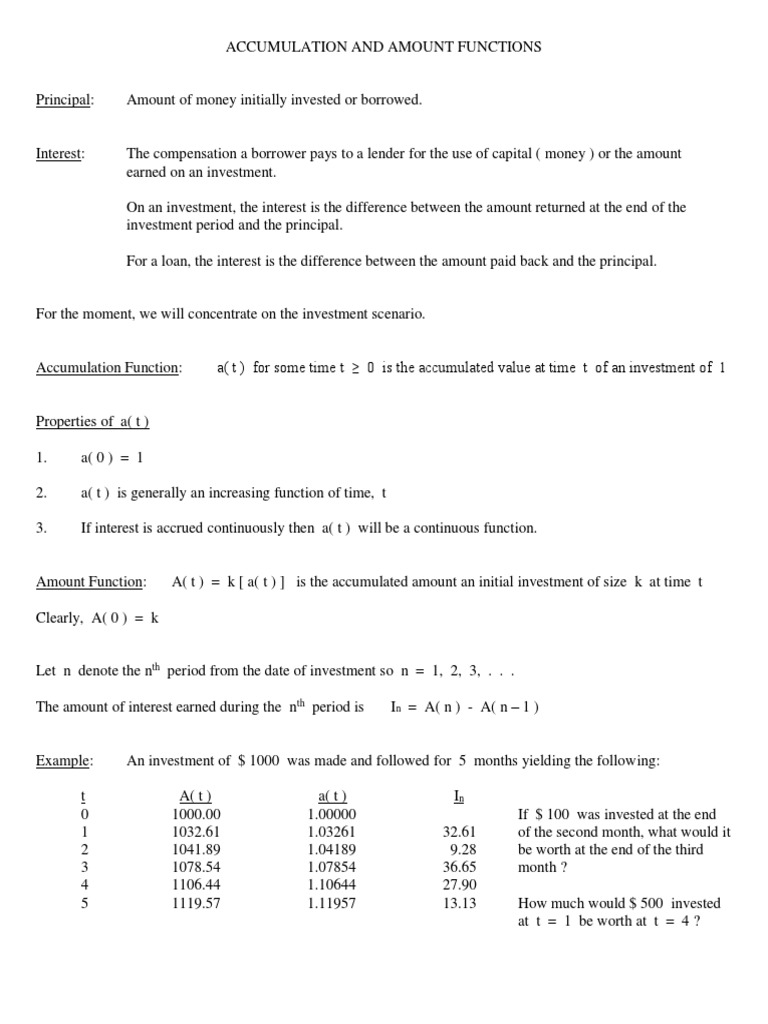 Accumulation and Amount Functions Explained | PDF | Interest | Bonds ...