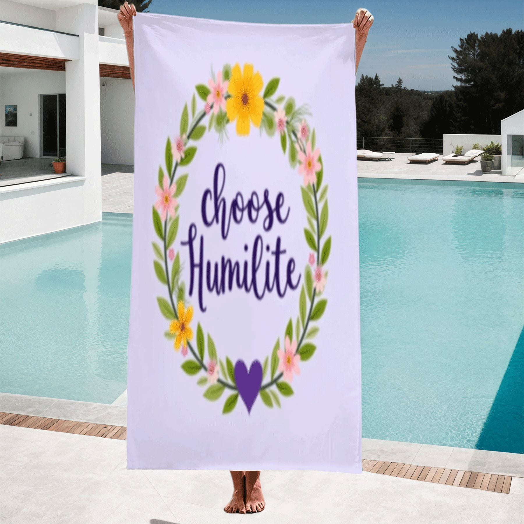 Choose Humility Floral Wreath Beach Towel - Vibrant Green Leaves & Pink ...