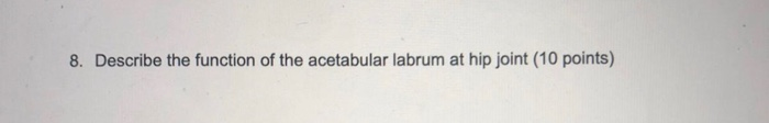 Solved 8. Describe the function of the acetabular labrum at | Chegg.com