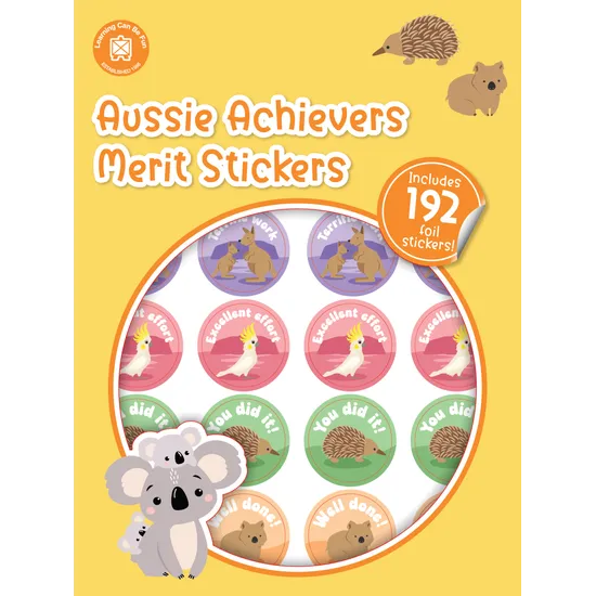 12x 192pc Learning Can Be Fun Aussie Achievers Merit Sticker Book 28mm ...