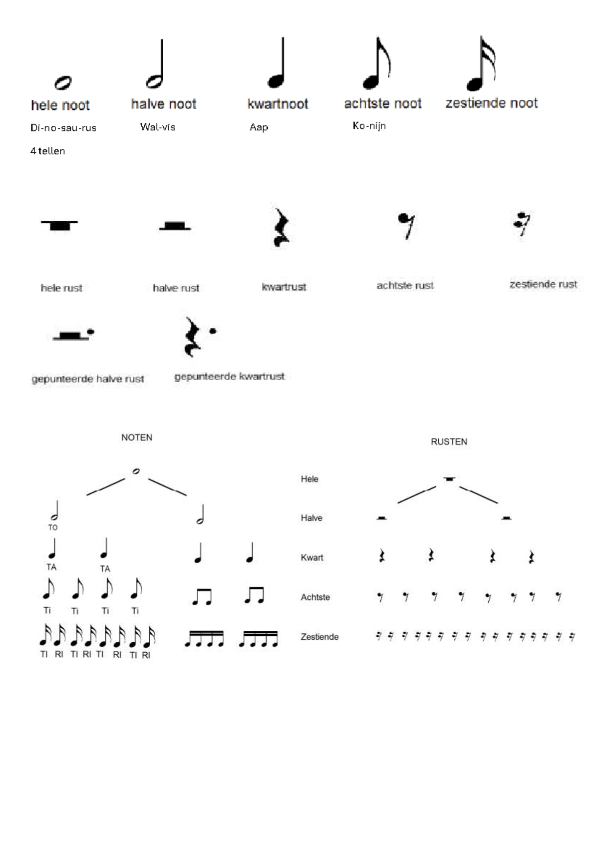 Ritmekaarten: Benamingen noten en rusten - Downloadbaar lesmateriaal ...