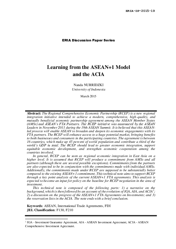 (PDF) Learning from the ASEAN+1 Model and the ACIA