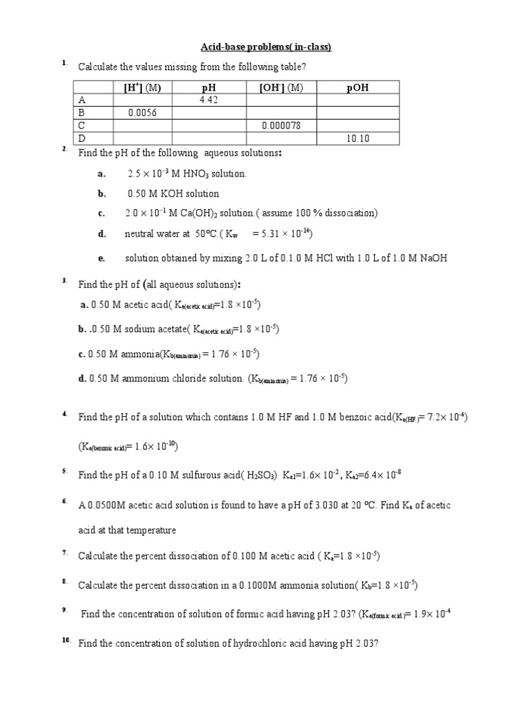 Acid Base in Class Problems | PDF