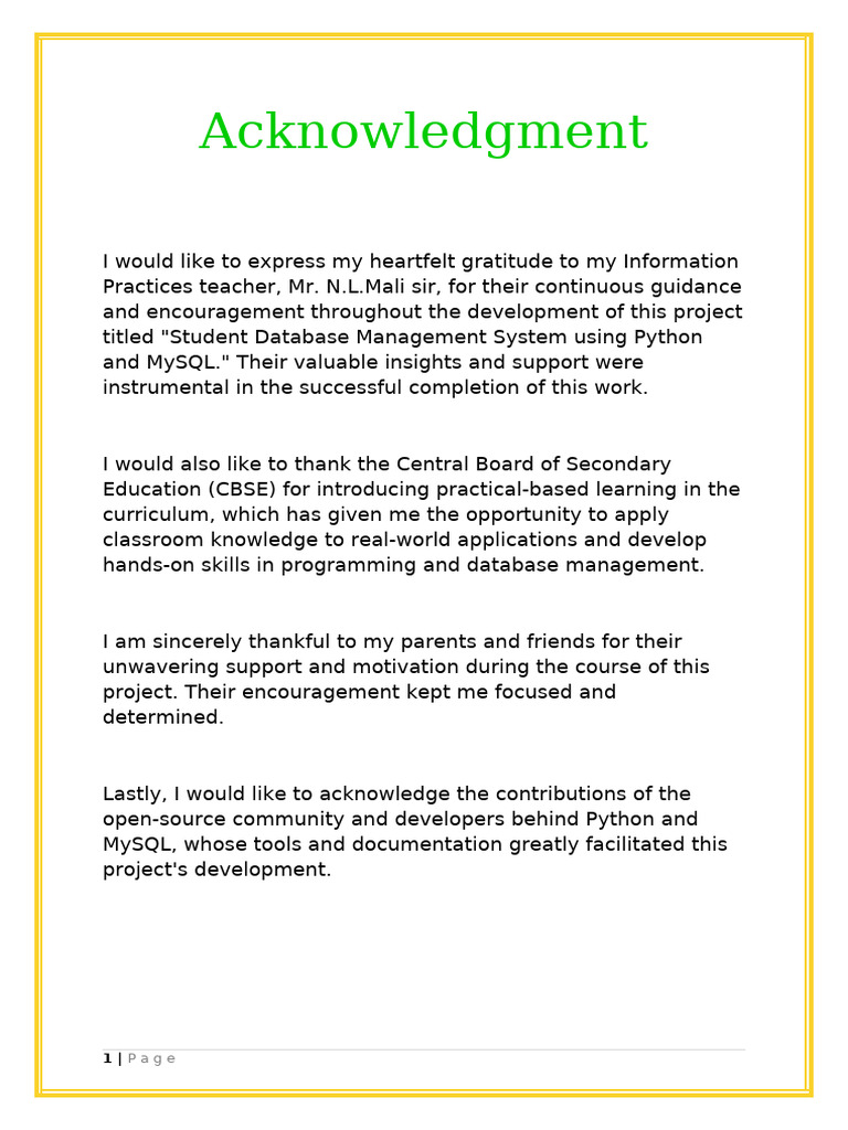 Acknowledgement Page For Prac Files | PDF