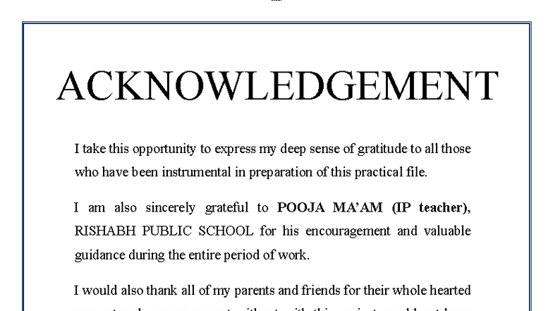 Acknowledgement - Practical File Preparation and Support - Studocu